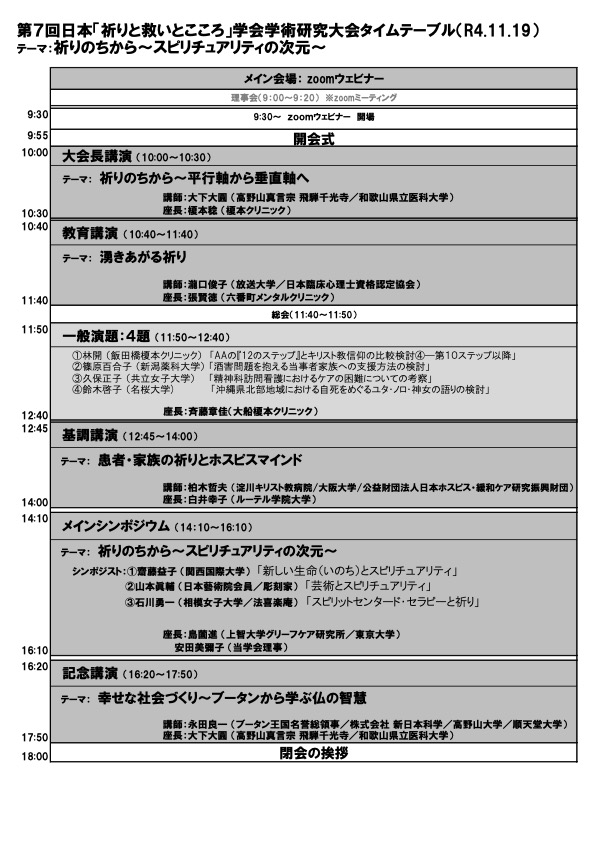 日本「祈りと救いとこころ」学会 第7回学術研究大会